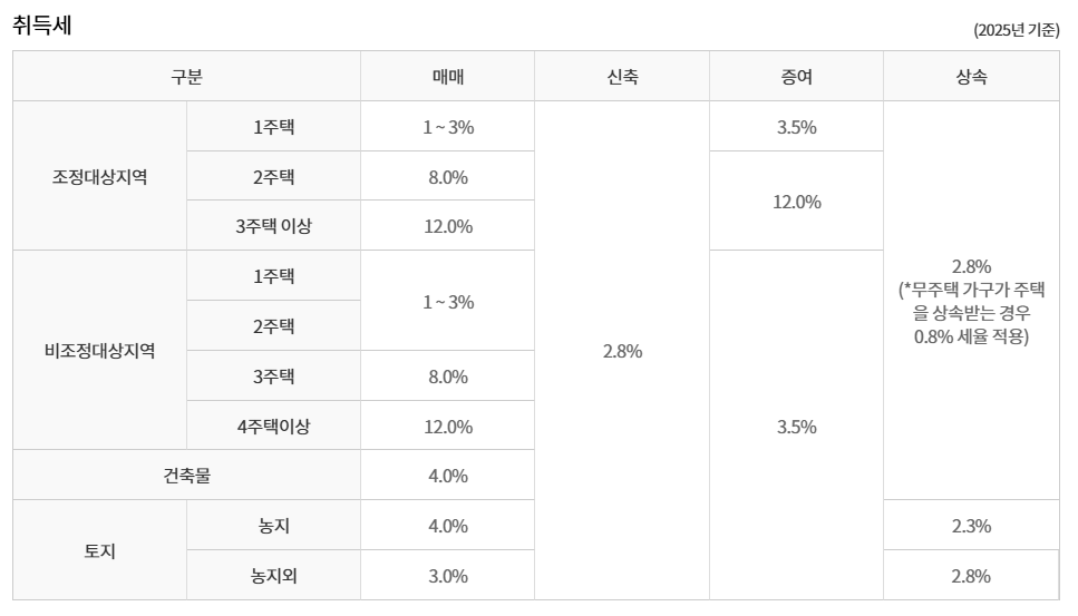 즉, 매매·증여·상속·분양권 전매 등 취득 형태와 주택 수, 금액에 따라 취득세율이 달라집니다.